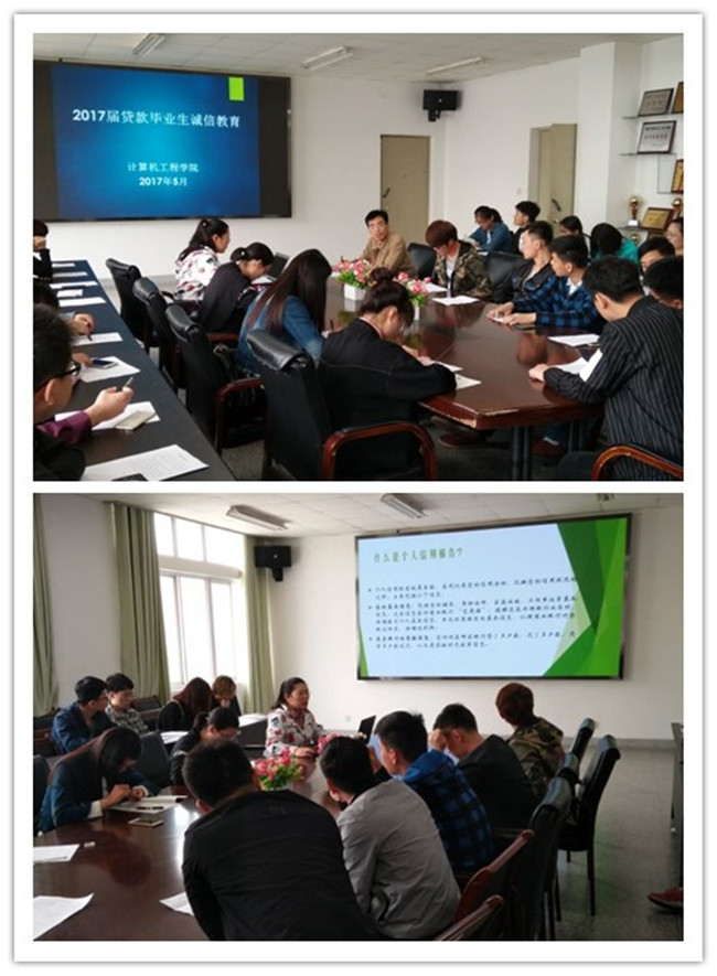 会上,辅导员杜捷对毕业生贷款确认的相关工作进行了通知和说明,就还款注意事项做了详细阐述,并对支付宝助学贷款还款应用的具体流程进行了图示讲解。网络131班李海琼同学带领贷款毕业生宣读并签写了《国家助学贷款诚信承诺书》,向学院学校表明,将严格遵守国家助学贷款还款确认的有关规定,依时还款,绝不违约,做一个诚实守信的人,维护自己和母校的荣誉。
